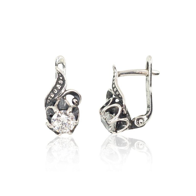 Silver earrings with 'english' lock, Silver 925°, oxide (Plating), Zirkons