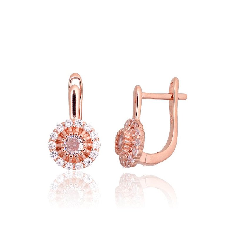 Silver earrings with 'english' lock, Silver 925°, red gold (Plating), Zirkons