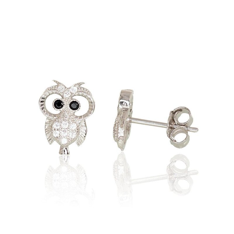 Silver stud earrings, Silver 925°, Rhodium (Plating), Zirkons